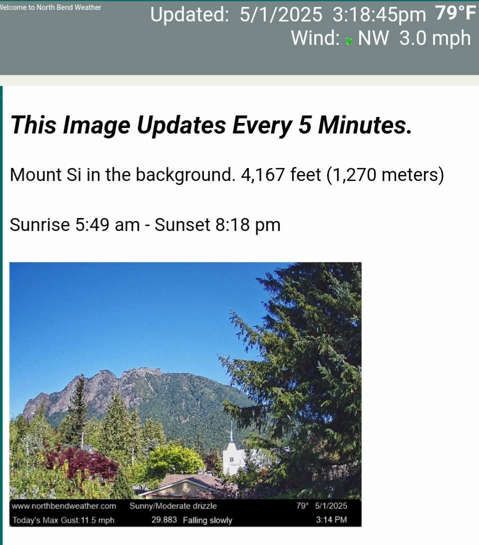 Elevation 580’ Location a few miles east of I-5 on the Snohomish Co side of the Snohomish/Skagit border. I love snow/cold AND sun/warmth!