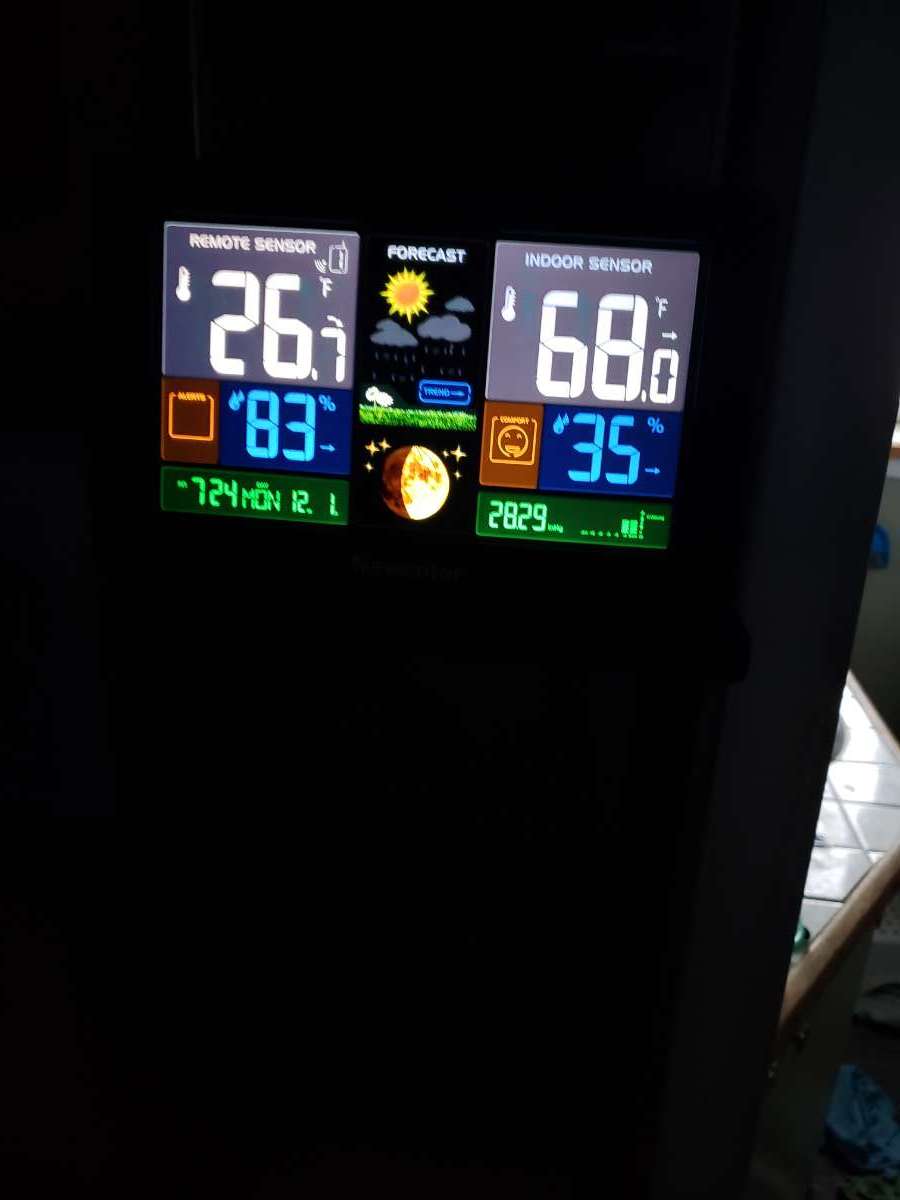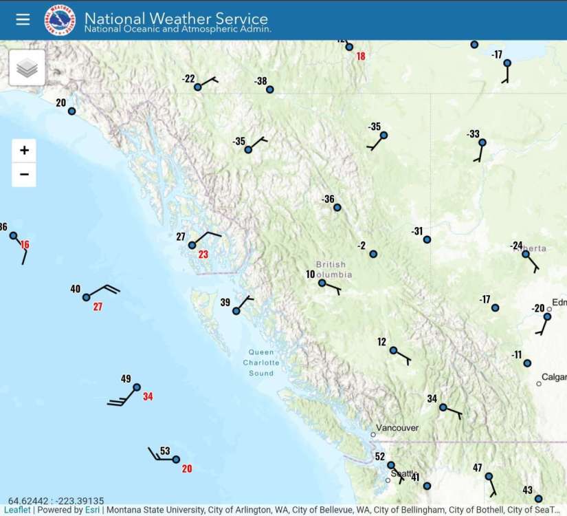 A slight chance of snow showers between 7am and 1pm. Partly sunny, with a high near 22. Wind chill values as low as -3. West northwest wind 9 to 13 mph, with gusts as high as 24 mph. Chance of precipitation is 20%.
