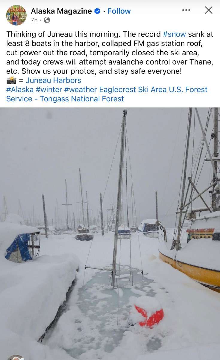 I was curious and checked their forecast and monday looks really snowy there. Pretty crazy winter for Juneau!