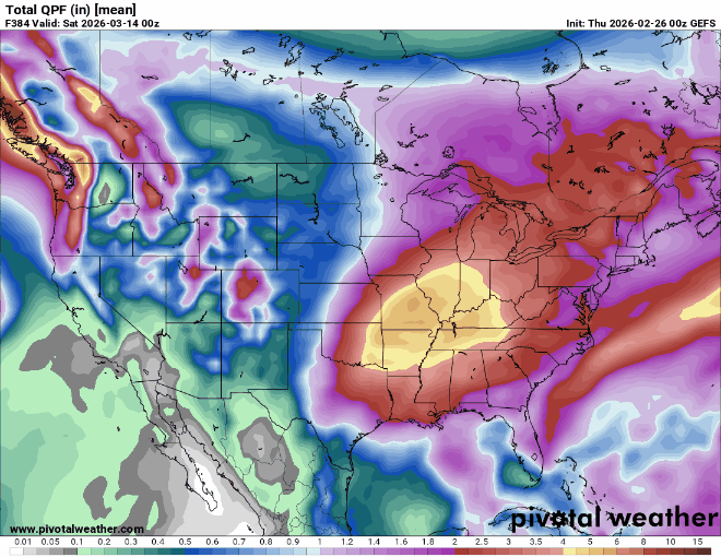 Black Hole Posted February 27 Posted February 27 1 hour ago, Andie said: Go for it Black Hole!! I’m a deranged optimist and we need the rain! We don't even have to rely on the crazy runs, the EPS mean is very wet the next 2 weeks. Drought to flood! 2 1 1 1 1 Quote Winter 25-26: Total Snow (7.0") Total Ice (0.1") Snow/Ice Events: 0.1" Dec 1 (ice) Jan 24 (1.6"), Jan 25 (5.4") Coldest Low: 6F Coldest High: 14 Winter 24-25: Total Snow (11.7") Total Ice (0.2") Coldest Low: 3F Coldest High: 16F Snow/Ice Events: 0.1" Jan 5th, 7.4" Jan 9-10, 0.2" Jan 20, 0.2" (ice) Feb 12, 1.2" Feb 15, 2.8" Feb 18 Winter 23-24: Total Snow (3.2") Total Ice (0.2") Coldest Low: 1F Coldest High: 5F